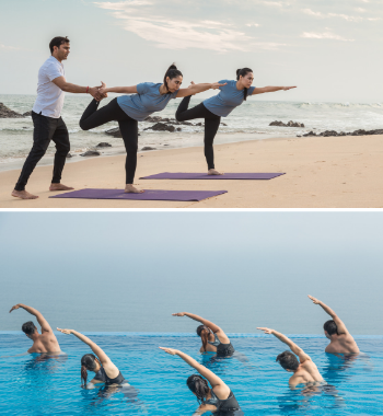 Constructive and focused Asanas leaves one with a calm mind, rejuvenated senses and a harmony within. Frequent beach side yoga enveloped in the soulful orchestra of the sea and fresh breeze uplifts the ‘prana’ – vitality